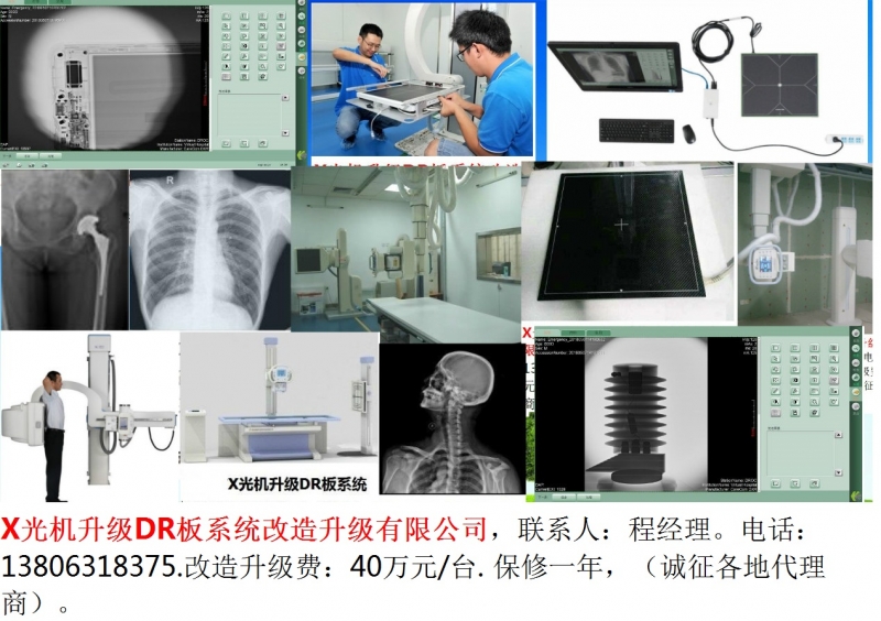 焦作市X光机升级DR板系统改造升级有限公司,联系人:程经理。电话:13806318375.改造升级费:40万元/台. 保修一年,(诚征各地代理商)。详情登陆我公司网站:。随着现代医学影像的不断发展及计算机技术在医学影像中的应用,医院数字化进程的不断加快,医院对于设备数字化的需求愈发迫切,医学放射影像数字化已是发展趋势,影像数字化管理已是当今医学影像发展的方向,也是PACS的基础。 数字化影像设备面世以来,以其高质量的图像,先进的数字图像处理系统赢得了广大用户的青睐。但由于其昂贵的价格,令很多用户望而兴叹。 如何用最少的投资完成影像设备的数字化的进程,已是广大用户的心愿。如何把普通摄片机X光机改造成数字X光机,也就是DR升级,我公司推出的“放射影像设备数字化解决方案”,以“充分利用现有设备,用最少的投资进行数字化升级改造使其达到数字化设备的所有功能”为原则,得到了广大用户的好评。 数字化升级系统---DR 保留原有X射线发生装置,去除其原有成像部分、机械结构,增加平板探测器、数字图像处理系统、DR专用诊断工作站、与之配套使用的机械结构(镰刀臂)等硬件及软件,从而构成一套完整的DR系统。 系统组成 1、 原有X射线发生装置(包括:原发生器、球管等); 2、 智能化镰刀臂支架系统; 3、 DR专用摄影平床; 4、 原装进口新一代平板探测器; 5、 原装图像采集系统; 6、 影像后处理工作站(选配);我公司推出专业精品的DR升级方案,可将普通X光机改造为数字X光机,乳腺机改造为数字乳腺机,移动X光机(移动床旁机)改造为移动DR,胃肠机改造为数字胃肠等,并推出PACS网络系统,可助力和完善医院的数字化、信息化建设。我公司是专业从事医用X线影像技术研发、生产的高新技术企业,相继开发出具有完全自主知识产权的8大系列40多个产品, 在医学影像行业享有很高的信誉和知名度,是集产品研发、生产、销售、服务为一体的综合性医疗设备产品供应商。 随着现代医学影像的不断发展及计算机技术在医学影像中的应用,医院数字化进程的不断加快,医院对于设备数字化的需求愈发迫切,医学放射影像数字化已是发展趋势,影像数字化管理已是当今医学影像发展的方向,也是PACS的基础。我公司致力于科技的不断进步、自主研发的不断创新,积极探索医学影像领域,相继推出FYC系列医学影像数字化处理系统、《血管机数字化升级项目》、《胃肠机数字化升级项目》、《模拟定位机数字化升级项目》、《直线加速器摄影系统》、《普通拍片机升级DR》、《普通胃肠机升级DR》、《普通胃肠机升级为静态平板胃肠》、《移动X线机升级为移动DR》、《FYC系列影像工作站》(适用于DSA、X光机、CT、MRI、DR等视频或数字影像设备)、PACS及远程医疗等项目,和我国医学影像设备的数字化发展同步,。,,,,,,,,,,,,, ,我公司,先后到北京市,天津市,山东省,黑龙江省,吉林省,辽宁省, 威海市区,文登区,荣成市,乳山市及烟台芝罘、福山、牟平、莱山4个区及长岛县,龙口、莱阳、莱州、蓬莱、招远、栖霞、海阳,,青岛,潍坊,淄博,德洲, 东营,济南,天津,北京, 大连, 沈阳, 上海,.苏州, 无锡市,临沂,本溪,衡水,长春,哈尔滨,太原,徐州,合肥,郑州,武汉,杭州,南昌,长沙,泉州,广州,西安,成都等用户进行X光机升级DR机改造,获得客户的良好评价,售后服务及时,到位。,改造机比整机更有应用价值,为什么这么说呢,并不是因为我现在从事的工作以改造DR为主,即使是对于一套飞利普或西门子的DR整机,我也认为它不如用原有的飞利普、西门子的X光机再叫原厂自己改造DR有应用价值。现在我谈谈我的理由:改造DR的曝光信号电缆一般连于高压发生器的外接设备端口,甚至直接连在手闸上,连接方式一般为端口式连接,而高压通讯电缆一般都是连接于平板探测器控制工作站和高压发生器的控制电路的通讯口上,普遍都是通讯端口(RS232),更是方便拔插的。一台改造比较好的DR,性能以及使用方便性丝毫不差于整机的DR,大家都知道,常规的X光摄影技术已经百年历史了,技术也已经成熟了几十年了,精通普通X光机维修的技术人员,各医院也大有人在,所以DR系统中X光部分首先不容易出现故障,其次出现故障后也很容易维修,一般故障多数出现在数字成像部分,一旦出现故障,整机DR只能停机报修了,而这是就能充分体现改造DR的优势了,首先,我可以拔掉高压通讯电缆,这时,同样可以进行DR摄影,仅仅比原有的操作流程多了一个手动选择X光机条件,最不济,我可以拔掉曝光信号电缆,这样,又恢复了普通X线摄影或者CR摄影,完全不影响医院的工作。另外,针对兼容性问题,前面提到了,只有两条电缆,高压通讯是国际标准协议,不存在兼容性问题,曝光信号仅仅是采集X线,也不存在兼容性问题,唯一的兼容性问题就是X光的线质,但数字成像的优点之一就是宽容性好,根据不同的X线质,进行不同的处理参数设定,这个问题也迎刃而解了。,,,,,,,,,,,,,,,