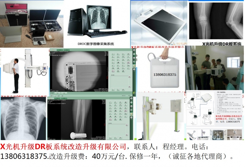 ,我公司,先后到北京市,天津市,山东省,黑龙江省,吉林省,辽宁省, 威海市区,文登区,荣成市,乳山市及烟台芝罘、福山、牟平、莱山4个区及长岛县,龙口、莱阳、莱州、蓬莱、招远、栖霞、海阳,,青岛,潍坊,淄博,德洲, 东营,济南,天津,北京, 大连, 沈阳, 上海,.苏州, 无锡市,临沂,本溪,衡水,长春,哈尔滨,太原,徐州,合肥,郑州,武汉,杭州,南昌,长沙,泉州,广州,西安,成都等用户进行X光机升级DR机改造,获得客户的良好评价,售后服务及时,到位。,改造机比整机更有应用价值,为什么这么说呢,并不是因为我现在从事的工作以改造DR为主,即使是对于一套飞利普或西门子的DR整机,我也认为它不如用原有的飞利普、西门子的X光机再叫原厂自己改造DR有应用价值。现在我谈谈我的理由:改造DR的曝光信号电缆一般连于高压发生器的外接设备端口,甚至直接连在手闸上,连接方式一般为端口式连接,而高压通讯电缆一般都是连接于平板探测器控制工作站和高压发生器的控制电路的通讯口上,普遍都是通讯端口(RS232),更是方便拔插的。一台改造比较好的DR,性能以及使用方便性丝毫不差于整机的DR,大家都知道,常规的X光摄影技术已经百年历史了,技术也已经成熟了几十年了,精通普通X光机维修的技术人员,各医院也大有人在,所以DR系统中X光部分首先不容易出现故障,其次出现故障后也很容易维修,一般故障多数出现在数字成像部分,一旦出现故障,整机DR只能停机报修了,而这是就能充分体现改造DR的优势了,首先,我可以拔掉高压通讯电缆,这时,同样可以进行DR摄影,仅仅比原有的操作流程多了一个手动选择X光机条件,最不济,我可以拔掉曝光信号电缆,这样,又恢复了普通X线摄影或者CR摄影,完全不影响医院的工作。另外,针对兼容性问题,前面提到了,只有两条电缆,高压通讯是国际标准协议,不存在兼容性问题,曝光信号仅仅是采集X线,也不存在兼容性问题,唯一的兼容性问题就是X光的线质,但数字成像的优点之一就是宽容性好,根据不同的X线质,进行不同的处理参数设定,这个问题也迎刃而解了。,,,,,,,,,